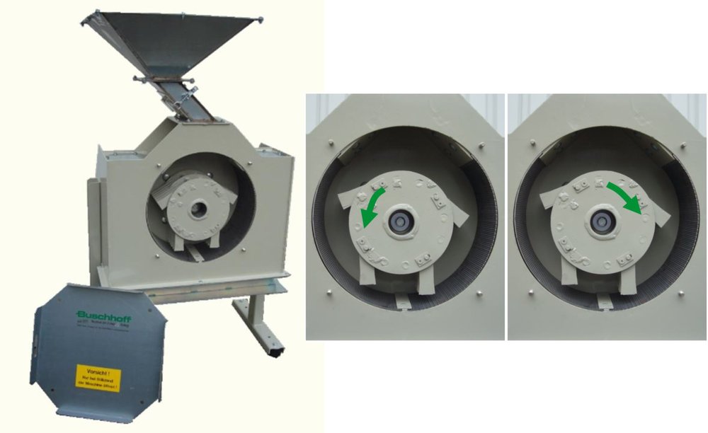За фирма Buschhoff на първо място стоят индивидуалните желания и нужди на клиентите. Основно предимство на дробилките от серия BHS е, че техните лопаткови колела могат да бъдат адаптирани в съответствие със специфичните нужди на клиента. Моделите имат високопроизводителни, трифазни двигатели с мощност от 7,5 до 18,5 kW. Изключително здравият, заварен, стоманен корпус и мощният двигател осигуряват дълъг експлоатационен живот на дробилката. 12-те чука, с твърдосплавни пластини, гарантират висока производителност и равномерна структура на смляното зърно по време на целия работен процес и освен това могат да се използват за всички видове зърно. Благодарение на автоматичния режим на работа, дробилката може да работи с минимални енергийни разходи, ползвайки нощна ел. енергия.