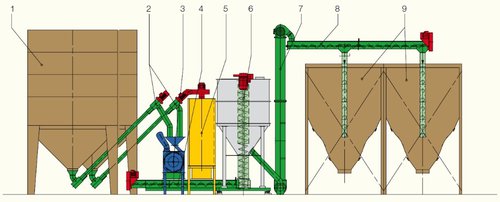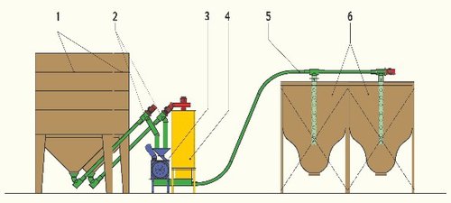 - отстранява смления материал от дробилката, вследствие на което се получава брашно с незначителна част ситни частици;