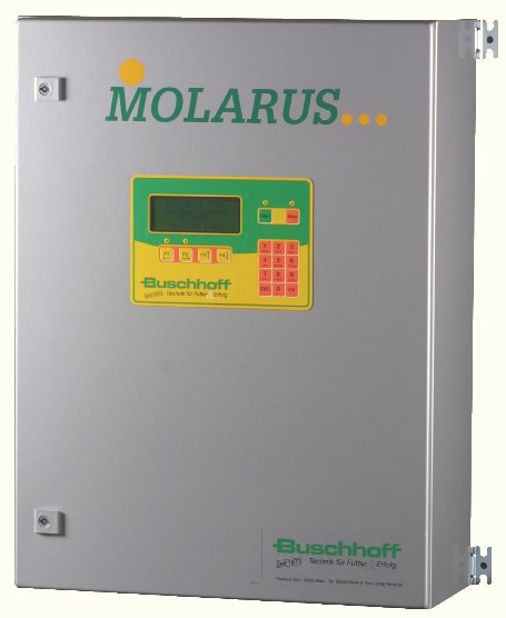 MOLARUS – интелигентен контрол за вашия фуражен цех Спестете време и увеличете ефективността на Вашия фуражен цех с компютъра MOLARUS на Buschhoff! За икономична и ефективна експлоатация трябва да имаме висококачествени машини за мелене и смесване, съчетани с интелигентен компютърен контрол, което води до напълно автоматична инсталация.