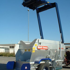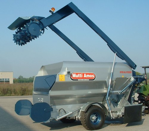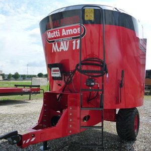 Фуражораздаващ миксер с един вертикален разбъркващ шнек с висококачествени ножове. Идеален за хранене на дойни крави. Предна двустранна разтоварваща лента. Силоотводен вал. Тегловна система модел Grafic. Хидравличен опорен крак, за теглича. Предна платформа за инспекция. Отговаря на СЕ стандарти.
