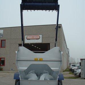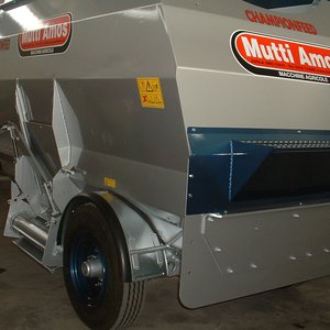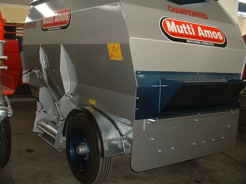 Фуражораздаващ миксер, оборудван с 2 хоризонтални разбъркващи шнека и със зареждаща фреза. Трансмисия на шнековете, потопена в маслена баня. Изпускателен отвор 65 cm, в средата на дясната страна, с ръчно регулиране на височината. Заден отвор за товарене на насипни материали. Фреза за зареждане на царевичен силаж, рулонни бали слама и сенаж. PTO вал, калници, дъно с дебелина 10 мм. Отговаря на европейските норми.