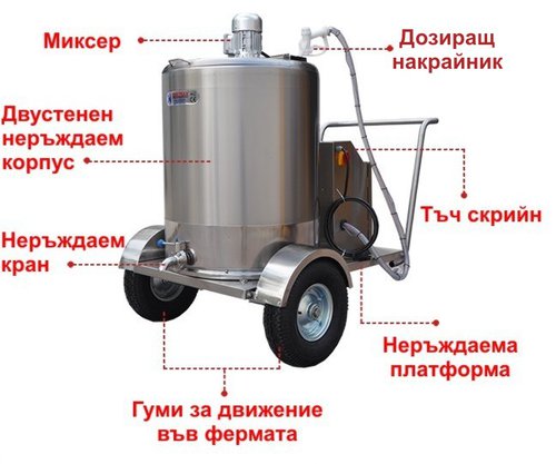 Хранилката “млечно такси” е специално създадена за хранене на телета. Може да работи с мляко или със сухо мляко. За понижаване титъра на бактериите млякото може да бъде пастьоризирано. Интуитивното меню и удобният тъч скрийн улесняват работата. С програмата “Ready” не е необходимо да се правят никакви настройки на миксера или температурата. Хранилката е оборудвана с 12 V батерии, благдарение на което дажбата на всяко теле се програмира и дозирането и става автоматично.