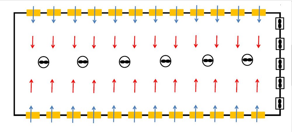 На схемите по-долу са дадени основните вентилационни схеми, използвани в съвременното птицевъдство.