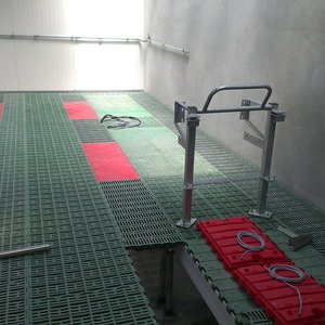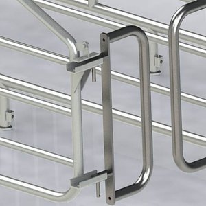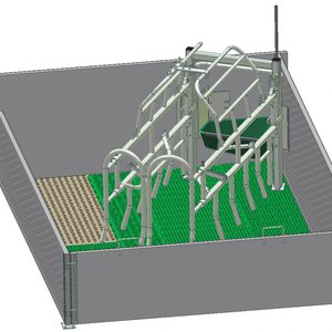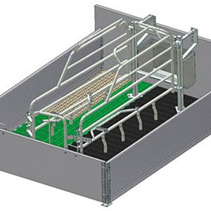 Фиксатор за кърмща свиня, за успореден монтаж (успоредно на надлъжната ос на бокса). Фиксира се към подовата система и към стената. Технически характеристики