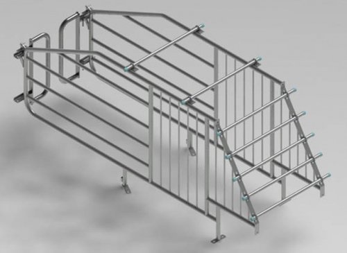 Фиксатор за кърмща свиня, за диагонален монтаж (диагонално на надлъжната ос на бокса). Фиксира се към подовата система (предните крака) и към стената, със специална конзола. Технически характеристики