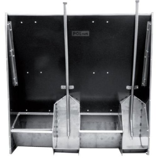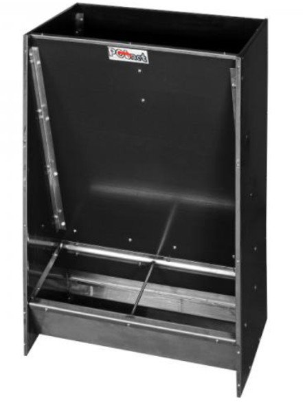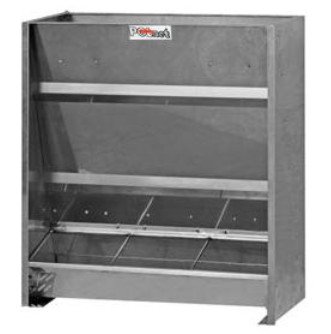 Хранилка за угоявани прасета с правоъгълно корито от неръждедаема стомана. Рамка от неръждаема стомана. Предназначенa за угоявани прасета от 30 до 120 kg. Една хранилка може да се ползва за до 50 прасета. Може да се монтира в бокса или на стената между боксовете. Капацитет на тубуса 100 kg. Цилиндричната форма на тубуса и бъркалката в него не позволяват засводяване на фуража. Тубусът е подвижен, което улеснява почистването. Корито от неръждаема стомана, разделено на две, с по два нипела за поене във всяка половина, разположени в самото корито. Дозиращ механизъм с клапа, активирана от прасетата – за оптимално хранене без разпиляване на фураж.