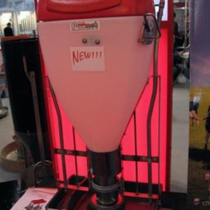 Хранилка за угоявани прасета с кръгло корито от полимер бетон. Удобно, гладко корито, без ръбове. Рамка от неръждаема стомана (предлагат се също с поцинкована рамка). Предназначенa за прасета от 30 до 125 kg. Една хранилка може да се ползва за до 50 прасета. Може да се монтира в бокса или на стената между боксовете. Капацитет на тубуса 80 kg. Специалната форма на тубуса и бъркалката в него не позволяват засводяване на фуража. Тубусът има капак, предотвратяващ разпрашаването на фуража. Капакът има два отвора за захранващи тръби. Система за поене с кръгла тръба и 6 нипела, разположени над коритото за хранене. Регулатор за притока на фураж с 10 позиции..