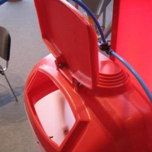 Хранилка за угоявани прасета с кръгло корито от полимер бетон. Удобно, гладко корито, без ръбове. Рамка от неръждаема стомана (предлагат се също с поцинкована рамка). Предназначенa за отбити прасета от 30 до 125 kg. Една хранилка може да се ползва за до 80 прасета. Може да се монтира в бокса или на стената между боксовете. Капацитет на тубуса 80 kg. Специалната форма на тубуса и бъркалката в него не позволяват засводяване на фуража. Тубусът има капак, предотвратяващ разпрашаването на фуража. Капакът има два отвора за захранващи тръби. Система за поене с 2 нипела на хранилка, разположени над обособени корита за поене. Регулатор за притока на фураж с 10 позиции.