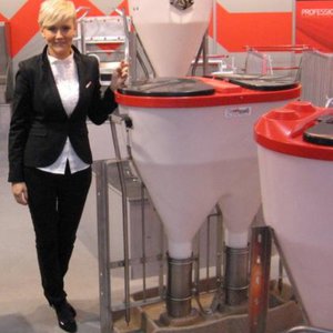 Предназначенa за угоявани прасета от 30 до 125 kg. Една хранилка може да се ползва за до 50 прасета. Може да се монтира както в бокса, така и на стената между боксовете. Капацитет на тубуса 80 kg. Специалната форма на тубуса и бъркалката в него не позволяват засводяване на фуража. Тубусът има капак, предотвратяващ разпрашаването на фуража. Капакът има два отвора за захранващи тръби. Система за поене с два нипела на хранилка. Единият нипел е в коритото за хранене, а другият – в отделно корито за поене. Регулатор за притока на фураж с 10 позиции. Удобно корито от неръждаема стомана. Рамка от неръждаема стомана (предлагат се и с поцинкована рамка).