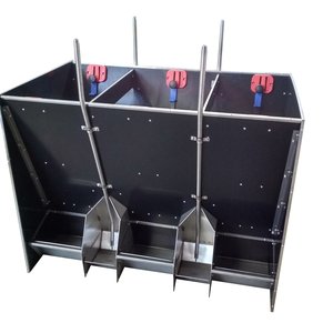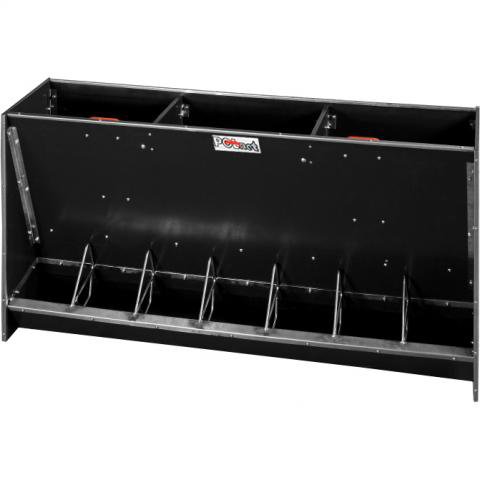 Хранилка тип “BOX”, oборудвана с допълнителни херъждаеми прегради на хранителните места, за понижаване на стреса при хранене. Подходяща е за сух комбиниран фураж (брашнест или пелетиран). Предназначена за прасета от 7 до 45 kg. Осигурява бърз и лесен достъп до фураж за всички прасета в групата. Едно място за хранене е достатъчно за 7 прасета. Удобна за животните, без остри ръбове, с минимално разпиляване на фураж, лесно почистване. Изработена от здрав полипропилен (PP), със завършващи профили от неръждаема стомана. Предлага се с три типа регулатори на притока на фураж.